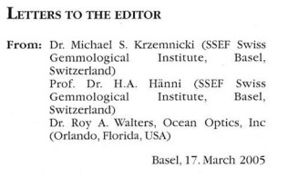 LIBS response letter. Published in Australian Gemmologist, 2005.